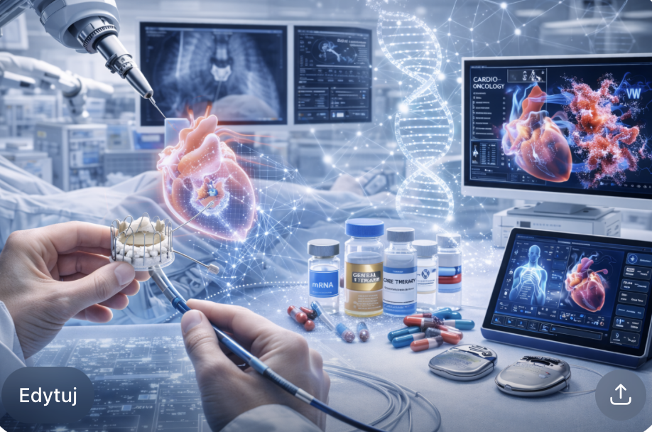 Równolegle rozwijają się biotechnologie i nowoczesna farmakoterapia, które redefiniują możliwości leczenia chorób sercowo-naczyniowych. Terapie oparte na biologii molekularnej, innowacyjne leki kardiologiczne oraz rozwój terapii genowych i komórkowych otwierają nowe perspektywy w regeneracji mięśnia sercowego i spowalnianiu progresji chorób. Najnowsze badania kliniczne koncentrują się m.in. na wykorzystaniu komórek macierzystych oraz terapii RNA, które w przyszłości mogą umożliwić odbudowę uszkodzonych struktur serca.